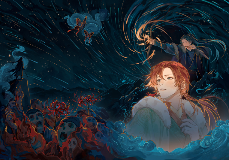 Hongjun se tambaleó hacia un árbol de arce y agarró su tronco para sostenerse, de repente anhelando su hogar. Recordando el baile de los cien pájaros y la música como oropéndolas cantando a coro de la noche anterior, le vinieron a la mente las volutas de nubes doradas que se arrastraban sobre el Palacio Yaojin y fue golpeado por una ola de terrible nostalgia.