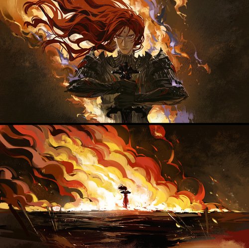 En lo alto del cielo, El Ahorcado no persiguió al sol que se autodestruía. En lugar de eso, planeó sobre la tormenta, con la mirada fija en el Castillo del Cisne Rojo, que presentaba una enorme herida. Seguía sin saberse qué contemplaba.